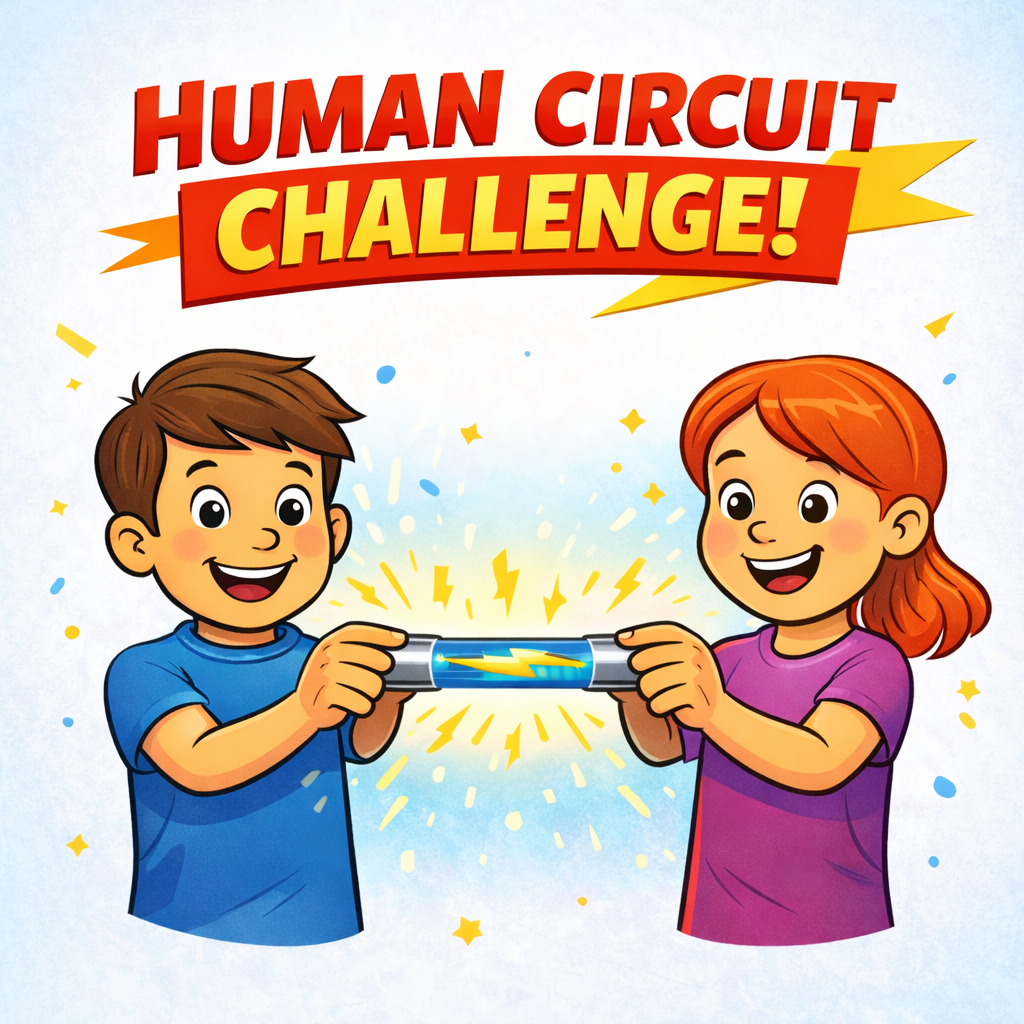 Guests can then work together to form a human circuit by holding hands, discovering that electricity can travel through a connected chain of people. The activity can also include testing common materials to see which ones conduct electricity and which ones act as insulators.