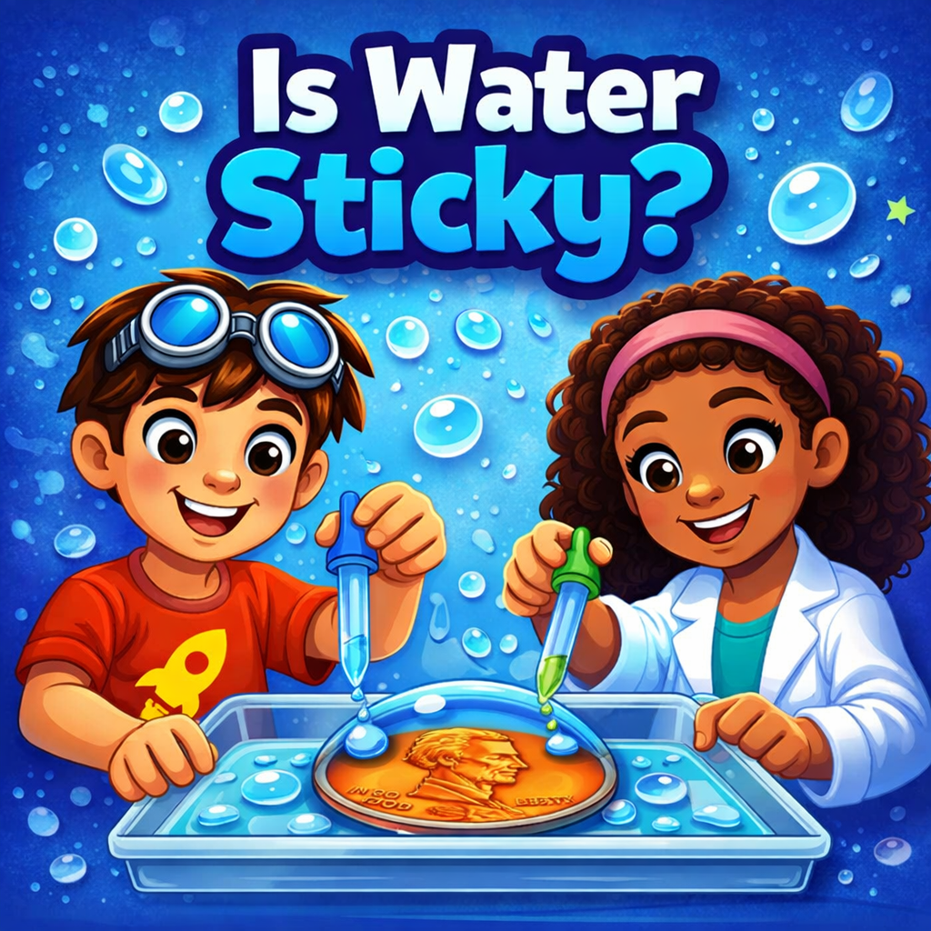 Surface tension makes water do some surprising things! In this hands-on activity, you’ll use an eyedropper to carefully place water droplets onto the surface of a penny. Can you beat the record? As you stack more and more drops, you’ll see the water bulge and cling together—almost like it’s “sticky!” Learn how molecules pull on each other to create surface tension, and discover the science behind this everyday mystery.